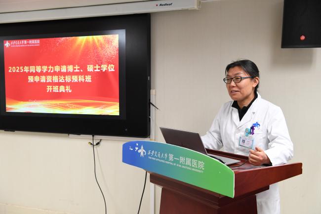 为进一步强化预科班管理,提升预科班质量,在李小鹏副院长的悉心指导下,我院教学部于12月25日上午在科教楼成功举办了2025年“同等学力申请博士、硕士学位预申请资格达标预科班”开班典礼暨培训活动。医学部人才培养处研究生主管卢阳老师和我院副院长李小鹏、教学督导专家马清涌、科技部科研管理中心副主任兼综合与计划办公室主任李光月、老年医学科副主任任延平、检验科副主任刘军辉、涉外病房(一)惠晓丽老师,以及教学部李雁部长、图书馆徐静副研究馆员、吴少东老师、习博老师和学员代表参会。会议由教学部副部长兼住培办主任祁磊主持。