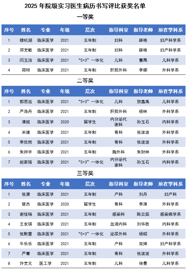 本次病历书写评比活动通过“以赛促学、以赛促教”的方式,有效激发了实习医生对病历书写重要性的认识,提升了其临床基本功和综合素养。教学部将继续以此类活动为抓手,不断完善临床实践教学体系,助力青年医师成长成才,培养更多优秀的医学后备力量。