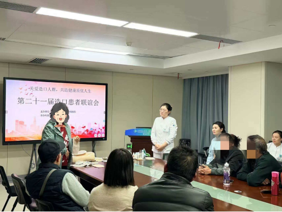 赵伟副主任以“造口手术及出院后复查”为主题,用通俗易懂的语言讲解了造口手术的最新进展、术后常见并发症的预防与处理,并重点强调了出院后定期复查的重要性。“造口不是生命的终点,而是新生活的起点,规范的随访和复查是保障长期生活质量的关键。”赵主任耐心细致地解答了患者们关于复查周期、复查项目等疑问,为大家树立了科学管理的信心。
