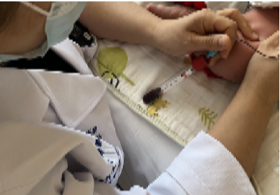 1月9日早晨八点,雷萍与郝园准时抵达。物品再三检查,步骤清晰讲解,宝宝安静躺在母亲怀中。评估、选择部位、消毒、进针……