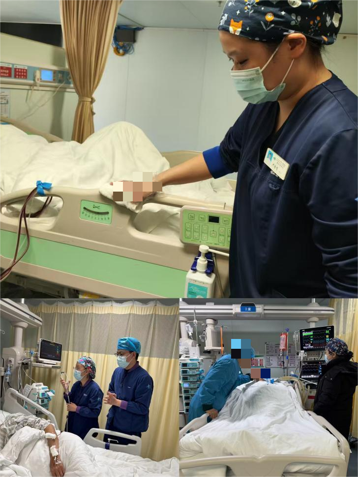 在重症医学科,李女士还遇到了专业、温暖、细心的护士们,以护士长马佳佳、邢欣,亚重症护理组长徐翠翠为首的护士团队致以最崇高的敬意,你们用无微不至的护理,让母亲在最后的日子里感受到了家一般的温暖。 特别感谢尹馨育、刘亭、殷娟、马丹丹、石浩楠等用无微不至的护理,让她母亲在最后的日子里感受到了家一般的温暖:尹馨育护士,胆大心细、处处为病人着想,做腹引穿刺时,她及时提醒大夫要关注病人只能右侧卧、需频繁起身的诉求,让引流管固定得更稳妥;考虑到苏奶奶住院两个月未曾见过阳光,在下雪那天,尹护士特意借来氧气罐、移动输液泵,帮苏奶奶裹好被子、扶上轮椅,推着她到窗前看雪。李女士说“当母亲望着久违的窗外出神、忍不住哽咽时,那个画面永远刻在了我们全家的脑海里。”