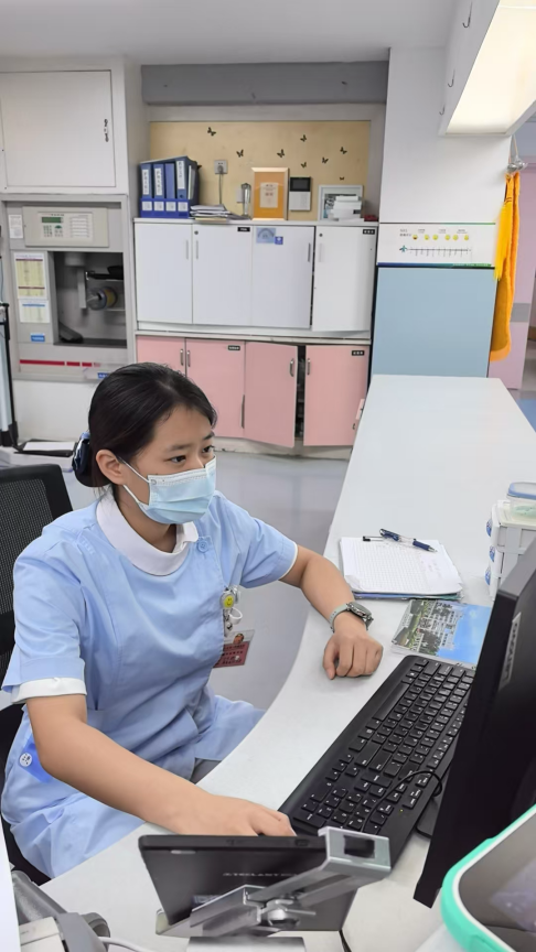 第一天来到病房时怀揣着忐忑的心情来到陌生的环境,是护士长陈宁老师带着我们熟悉病房环境,给我们讲解科室的常见疾病,温柔耐心的为我们答疑解惑,使我紧张的心情平复了下来。在病房中我看到因癫痫发作而抽搐的患儿、因肺炎而呼吸急促的婴儿、因白血病化疗而头发稀疏的孩子、因肾病综合症而全身水肿的患儿时,我才真正体会到书本上每一个名词背后的重量。在看老师们为患儿进行静脉穿刺时才明白了为什么大家都说儿科护士扎针技术是最好的。面对哭闹的孩子和一旁紧盯着你的家长,不自觉的就会紧张起来。有时一个闹腾一些的小孩需要两三个人来按压,更加需要技术的精湛与娴熟以及强大的心理素质。