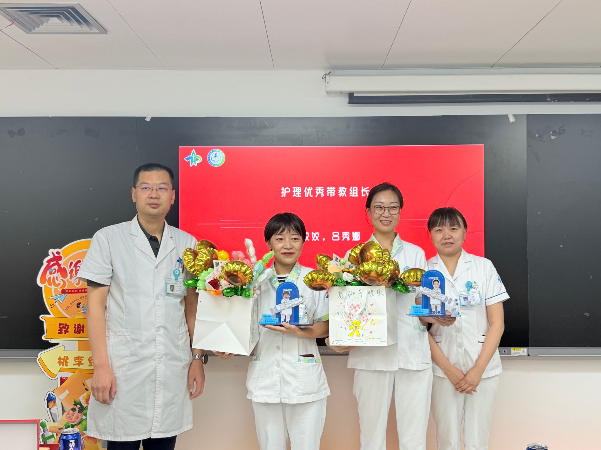 表彰先进树榜样,在西安交通大学第一附属医院2024-2025 学年教学先进集体及个人表彰中,胸外科荣获优秀教学单元,张广健主任获得院级优秀本科生导师奖,张勇、高山、张言鹏获优秀教师(理论授课),张伯翔获优秀教师奖(实践带教);高山获得校级上半年教师授课竞赛二等奖;科室再次向获奖的各位老师表示感谢和祝贺。同时为长期负责护理实习生带教的杜娇娇、吕秀娜带教组长表示感谢,为他们定制了优秀教师形象摆台及鲜花,以肯定他们在教学和带教工作中的优秀表现。