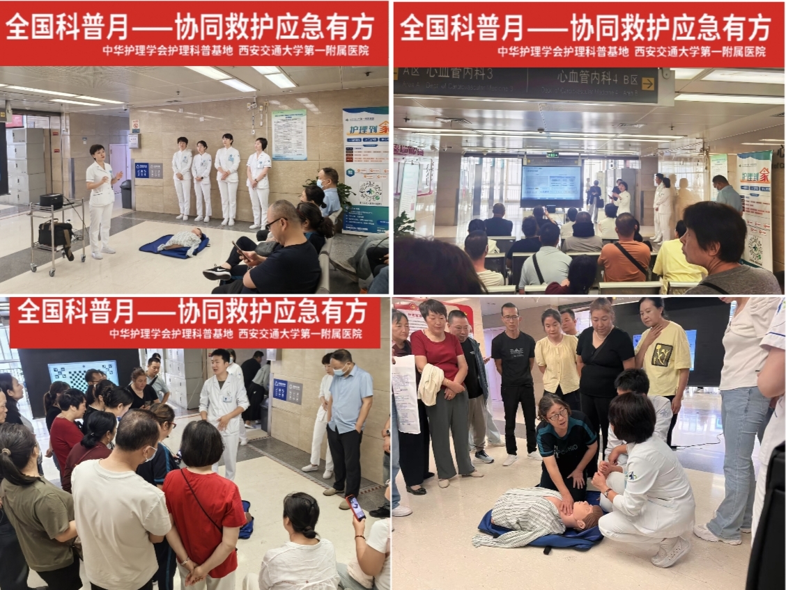 秋高气爽,科普惠民。为积极响应2025年“全国科普月”活动号召,充分发挥专业特色,9月8日至9日,在李娟利总护士长和李静护士长统筹带领下,心血管内科在住院部四楼、五楼大厅成功举办了以“提升全民科学素质,夯实科技强国基础——协同救护 应急有方”为主题的健康科普系列活动。本次活动旨在将专业的心血管急救知识转化为通俗易懂的生活技能,切实提升公众对心血管急症的识别与初步处置能力,构筑起“人人懂急救,急救为人人”的健康防线。