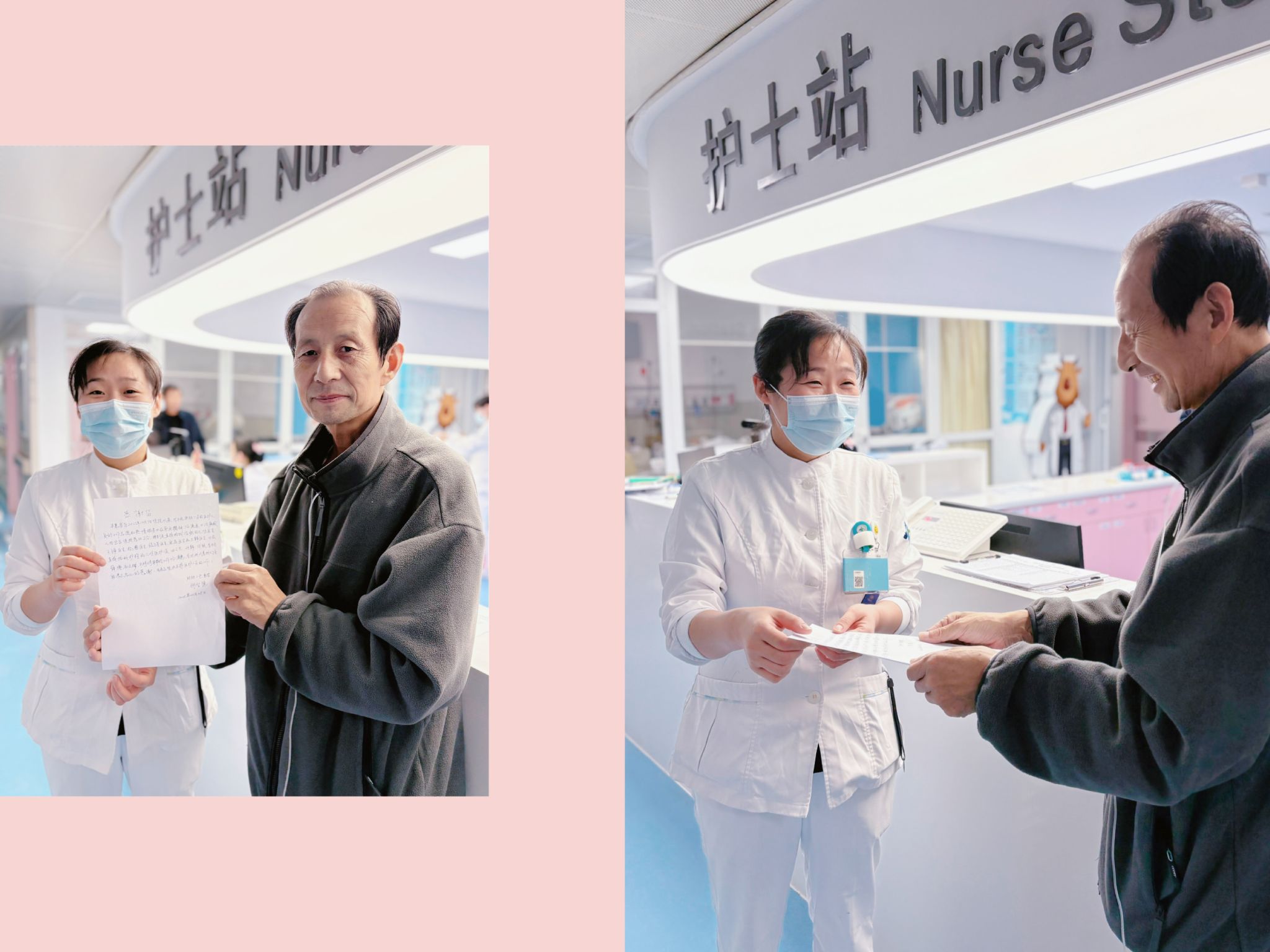 出院当天上午,张先生收拾好行李后,没有直接跟随家人离开,而是径直走向护士站。彼时护士站里正忙着核对医嘱、准备治疗用品,他轻轻在门口驻足,等护士忙完手中的活,才从上衣口袋里拿出一张叠得整整齐齐的纸,双手捧着递过去,脸上带着康复后的轻松笑容,语气里满是感激:“这段时间麻烦医生和护士们了,尤其是帮我盯着血糖,真是辛苦大家了,这封感谢信请一定要收下。”接过感谢信的护士笑着回应:“张叔,您太客气了,这都是我们应该做的!回家以后记得按时监测血糖,有任何不舒服随时给我们打电话,祝您恢复得越来越好!”简单的对话里满是真诚,周围忙碌的同事们也纷纷投来微笑,原本紧张有序的护士站,因这短暂的交流多了几分温馨。张先生又笑着和大家道别后,才脚步轻快地离开医院。