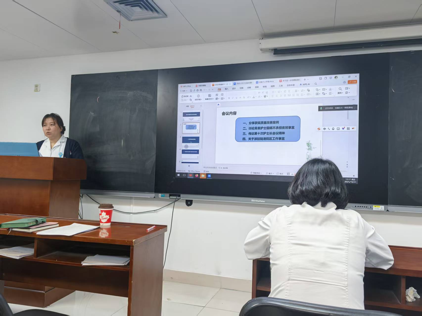 培训的最后,任靖护士长对十月份护理质量进行了深入分析。分享了优秀质量改善案例,同时传达了第十次护士长会议精神,并就本科生护理人员派驻陆港院区工作事宜,现场展开讨论,最后要求全体护士以问题为导向,持续改进,精益求精。