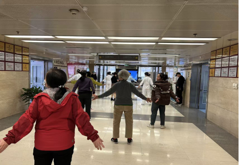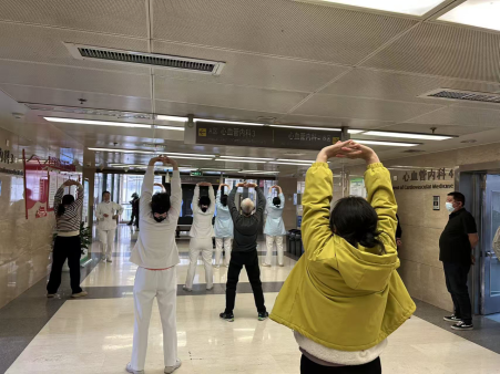 “吸气时沉肩坠肘,呼气时舒展腰背,动作不用快,重点是呼吸和动作的协调。”护士一边带领练习,一边轻声提醒患者注意事项,针对年龄较大、肢体活动不便的患者,还进行一对一指导,调整动作幅度以适配其身体状况。患者们热情高涨,跟着护士的节奏认真练习,病房走廊里洋溢着专注而温馨的氛围。有患者表示:“之前住院只能卧床或慢走,现在跟着护士练八段锦,感觉身体舒展了,心情也轻松很多,比单纯吃药调理更有参与感。”