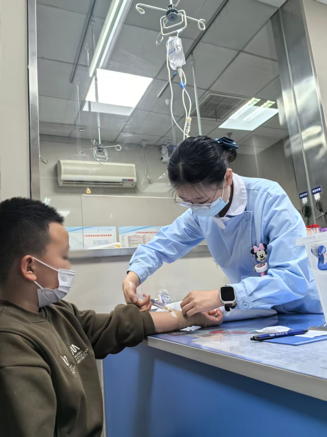 儿科门诊的清晨,总是被孩子们的啼哭声、家长的叮嘱声交织填满,这份热闹与成人科室的沉静截然不同。第一次走进诊室,看着攥着家长衣角、眼神怯生生的患儿,我突然意识到,这里的护理工作远不止“精准操作”那么简单。成人患者能清晰诉说“头痛”“乏力”,能在输液时保持固定姿势,可孩子们只会用哭闹表达不适,用躲闪抗拒治疗。记得我第一次尝试为一名三岁患儿做雾化吸入,刚拿出雾化面罩,孩子就“哇”地一声哭了出来,手脚不停地挣扎,家长也跟着手足无措。我握着面罩的手僵在半空,生怕动作不当吓到孩子。就在这时,带教老师轻轻走过来,指着电视机里的动画片,蹲下身柔声对孩子说:“宝贝你看,这个动画片里面的是谁啊,多么勇敢的……”趁着孩子注意力被吸引,老师一边温柔安抚,一边示意我调整雾化器,“动作要轻,贴合口鼻但别压到脸颊,雾化时要观察孩子的呼吸,别让雾气药液呛到。”在老师的指导下,雾化终于顺利完成,孩子不哭了,还拉着我的衣角,那一刻,我心里涌起一股难以言喻的暖流——原来儿科护理,是要用爱心和童趣搭建沟通的桥梁,这是我在成人科室从未体会过的柔软与感动。