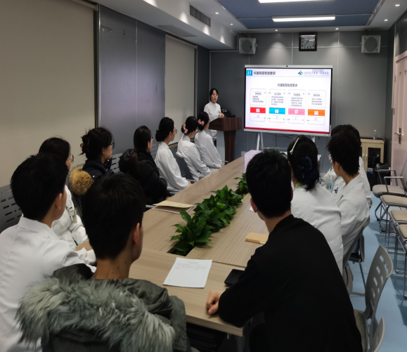 见面会伊始,由规培总带教蔺杏月护师首先围绕医院“三院四区”的发展格局,系统介绍了医院的历史传承、学科分布和服务理念,帮助规培护士深入理解医院的文化底蕴与使命担当。随后,科室介绍部分从心血管内科“一院三区”的统筹管理切入,展现了学科在诊疗技术方面的持续发展与创新。接着,会议重点介绍了心血管内科护理团队,涵盖管理架构、专业技术、专科特色、学术贡献、社会影响、科室文化及护理科研等多个维度,助力规培护士全面认识科室,更好融入团队。接着规培护士和各病区护长、带教老师分别进行了进一步的了解和自我介绍,并就规培工作具体安排、注意事项等内容展开详细说明,明确了规培期间的制度要求、带教计划、理论授课与操作培训安排,并提醒规培护士按照护理部要求完成相应作业与考核。