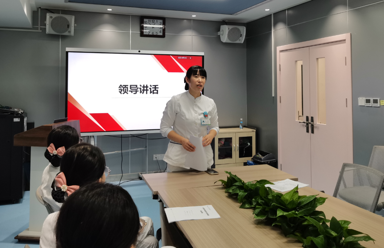 心血管辖区李娟利总护士长代表护理团队,对14位新加入的规培护士表示诚挚欢迎。她指出,心血管内科作为西北地区规模最大、实力领先的专科,不仅是陕西省重点学科及国家级胸痛中心,更在急危重症救治、介入诊疗及智慧护理创新、疑难病例抢救成功率等方面保持先进水平。李护士长强调,护理工作是心血管诊疗体系的重要支柱,寄语新护士怀敬畏之心、持精进之志,在实践中锤炼技能,在协作中共同成长,努力成长为专业扎实、富有人文关怀的优秀护理人才。会议尾声,刘盈盈护士长进行总结讲话。她对本次见面会的圆满举行表示肯定,再次强调规培是护理职业生涯的重要奠基阶段,希望新护士们能快速完成角色转变,以严谨务实的态度对待每一项工作,以温暖真诚的情怀服务每一位患者。她要求带教老师们认真履行职责,因材施教、严爱相济,助力规培护士实现专业能力的稳步提升;同时鼓励规培护士之间互帮互助、共同进步,在科室营造比学赶超的良好氛围。