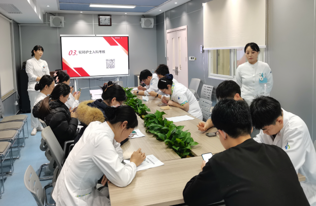 为精准掌握新护士的专业基础,以便后续落实个性化培养方案,见面会结束后,科室组织14名规培护士进行了入科摸底考试。考试内容涵盖基础护理知识、心血管专科护理要点、医院核心制度等多个方面,全面检验了大家的理论功底与知识储备,为后续规培工作的有序开展提供了重要依据。