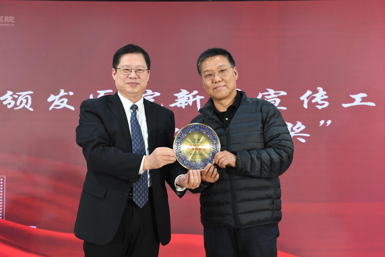 会上,马辛格书记为经济日报社陕西记者站原站长张毅颁发了西安交大一附院宣传工作“终身成就奖”,表彰其为记录医院发展、传播医者仁心所作出的卓越贡献。
