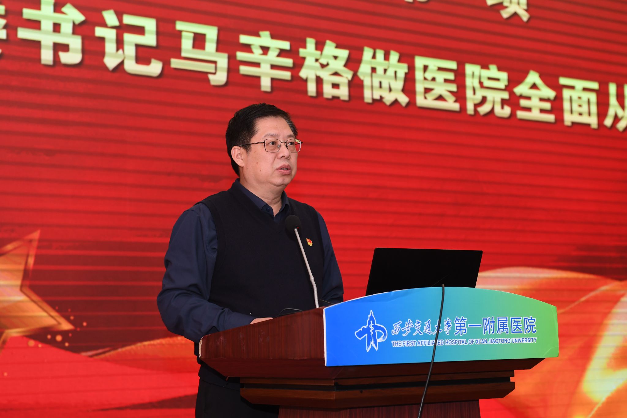 马辛格书记作全面从严治党工作报告,报告中结合医院实际,以交心谈心的方式围绕四个方面作部署。他强调,一是要筑牢政治根基,以格局视野引领事业发展,始终以国家队医院的站位扛起政治责任,坚决摒弃“上热中温下凉”现象,推动党建与学科发展深度融合,把国家医学中心创建、区域医疗中心建设等核心任务落到实处。二是要深化融合赋能,通过“一个规划定方向、一个组织强保障、一支队伍聚合力、一套制度管长远、一种文化凝共识”的“五个一”路径,破解党建与业务“两张皮”问题,以高质量党建引领业务高质量发展。三是要坚守底线红线,严守医德医风、科技诚信等生命线,深刻汲取身边案例教训,敬畏生命、敬畏制度,筑牢拒腐防变思想根基。四是要压实从严责任,以过硬作风和自我革命精神推动工作落地,将全面从严治党要求内化于心、外化于行,为医院发展凝聚强大合力。