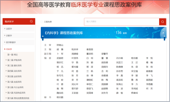 《内科学课程思政案例库》紧密结合《内科学》(第10版)教材目录,已收录136篇案例。案例思政主题围绕习近平新时代中国特色社会主义思想,涵盖政治、职业、科学、道德、文化、法治与心理七大素养,有机融入家国情怀、职业伦理、科学精神等内涵。