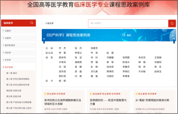 在“立德树人”根本任务贯穿医学教育全过程的时代背景下,课程思政已成为培养德技并修医学人才的核心抓手。人民卫生出版社联合西安交通大学医学部牵头,按照人卫社规划教材模式建设了中国医学教育课程思政案例库,涵盖医学各专业核心课程,在全国范围内组织最具权威性和代表性的编写团队,编写高质量课程思政案例,为一线教师在专业授课中融入思政元素提供坚实支撑。