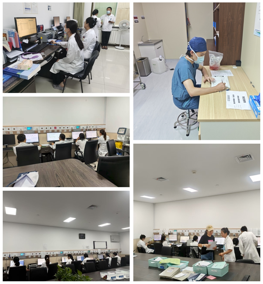 教学部住培办公室工作人员分7组,对包括心血管内科、普通外科、全科医学科、超声医学科在内的 28个临床轮转培训科室进行了全面检查,重点核查了各科室实际在培医师人数、检查当日实时在岗情况以及近期请假记录与手续完备性,明确学员去向。检查过程中,检查人员就发现的问题与各科室的规培秘书进行了即时沟通与反馈,强调了在岗在位和按计划轮转的纪律要求。