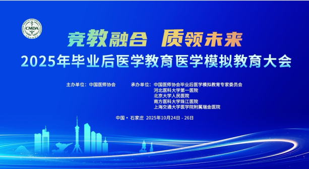 2025年10月24-26日,由中国医师协会主办,中国医师协会毕业后模拟教育专家委员会、河北医科大学第一医院、北京大学人民医院、南方医科大学珠江医院、上海交通大学附属瑞金医院共同承办的“2025年毕业后医学教育医学模拟教育大会”在河北省石家庄市顺利举办。此次大会以“竞教融合 质领未来”为主题,在大会主论坛外同期举办中国医师协会第二届住院医师规范化培训指导医师教学能力竞赛、4个主题分论坛、3个工作坊。来自全国70余名知名医学模拟专家共聚一堂,探讨毕业后医学模拟教育的现状与未来发展。吸引来自全国342家培训基地的1200余名代表现场参会,在线关注竞赛环节人数超过160余万。